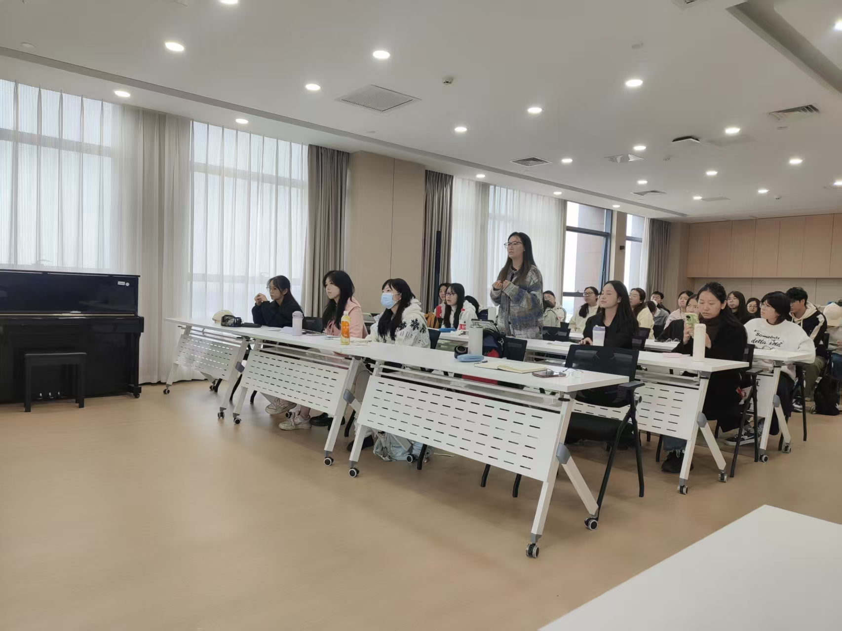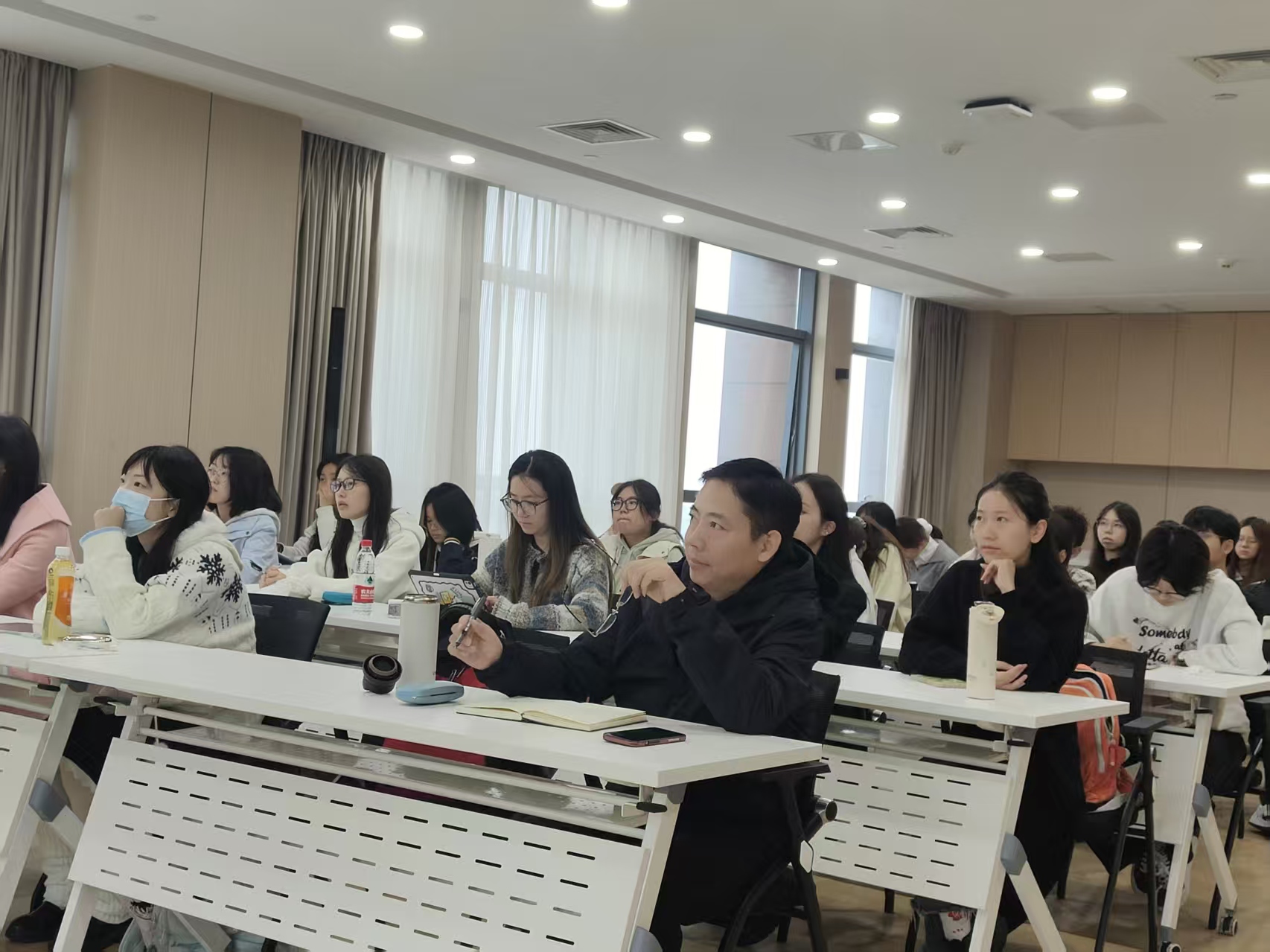 在提问交流环节,与会学生就“如何理解诗歌的‘张力’与‘含混’”“如何在日常生活中培养语言敏感度”“矛盾是否构成诗歌创作的必要动力”等问题踊跃提问,吕约教授逐一予以解答,进一步拓展和深化了参会学生对讲座内容的理解。最后,周东升老师进行了简要总结。讲座在热烈掌声中圆满结束。