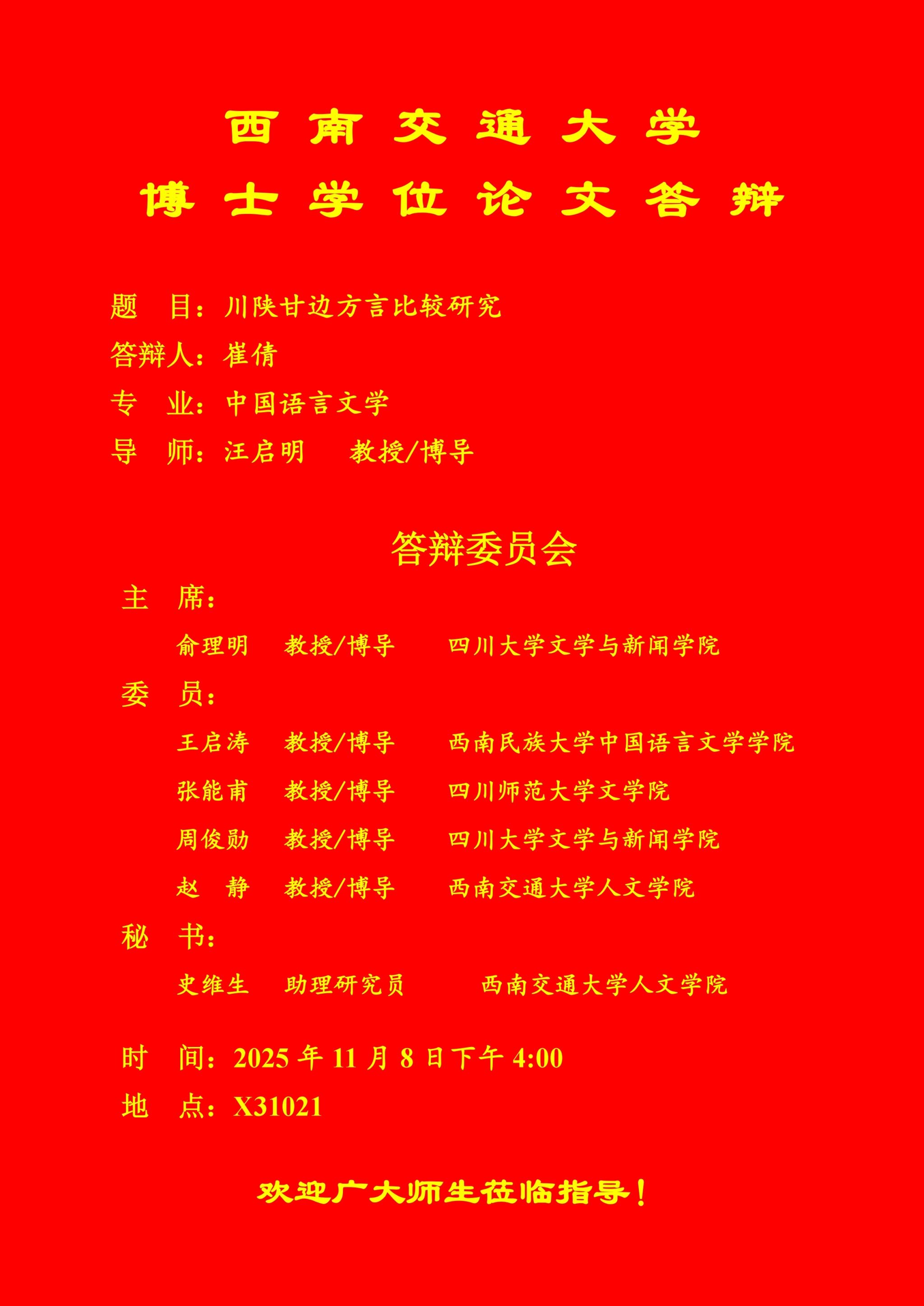 【博士答辩】必赢线路检测3003博士研究生学位论文答辩海报