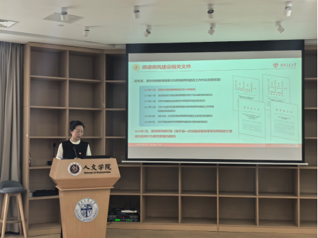 必赢线路检测3003召开师德师风专题宣讲会为大力弘扬教育家精神,进一步加强学院教师思想政治和师德师风建设,2025年10月16日下午4:00,必赢线路检测3003在犀浦校区X31022报告厅召开以“恪守十项原则,涵养高尚师德”为主题的师德师风专题宣讲会议。会议由学院院长刘占祥主持,学院党委书记罗妍妍作主题宣讲,全院教职工参与学习。