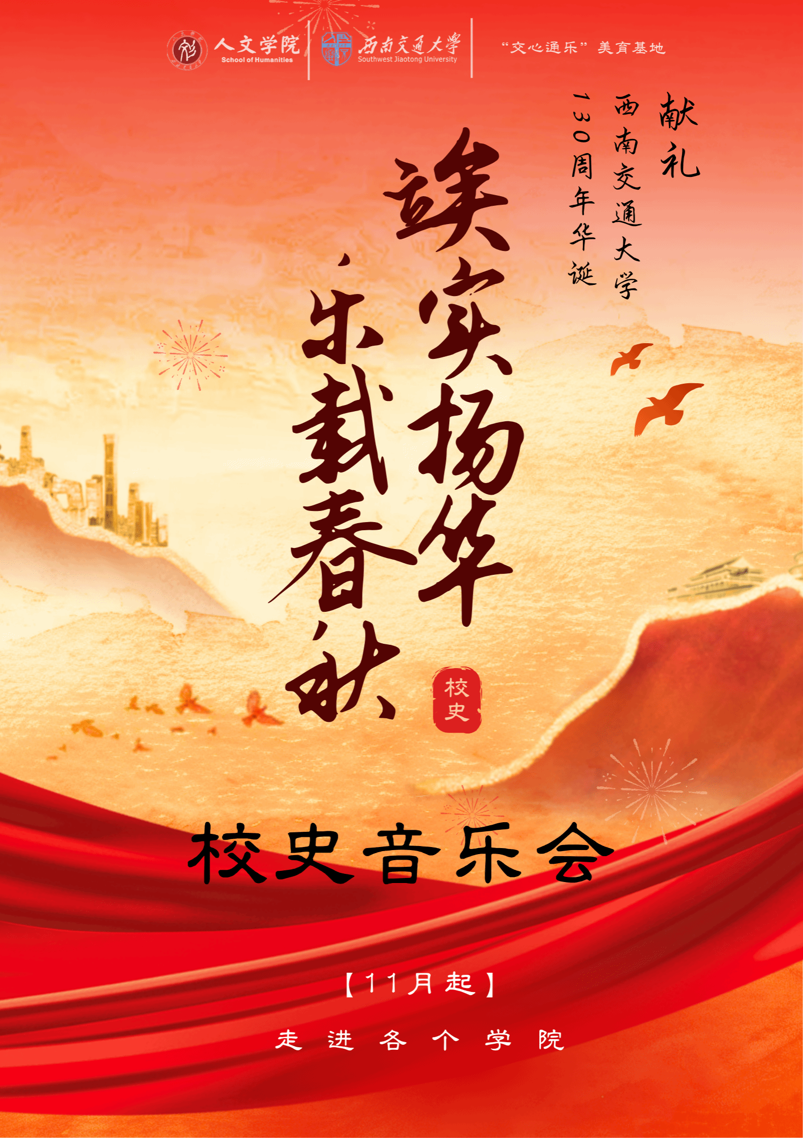 2. 全校公开展演:2026年4月,举办面向全校师生的公开大型展演,实现校史文化传播全覆盖。