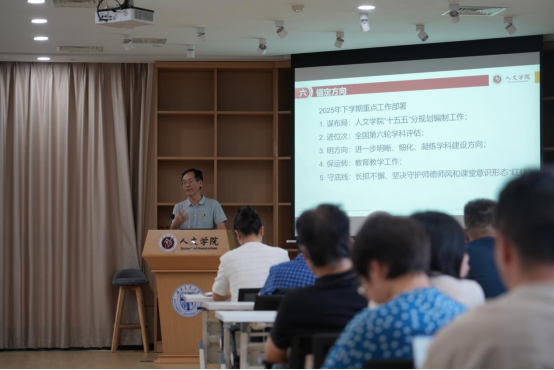 同时,刘院长也指出学院当前存在的问题,并以“谋布局、进位次、明方向、保运转、守底线”为题,从整体规划、党建引领、全力备战全国第六轮学科评估、学科群建设、教育教学保障等方面对下半年工作进行了部署。最后,刘院长鼓励全体教职工积极把握发展机遇,共同书写学院发展新篇章!